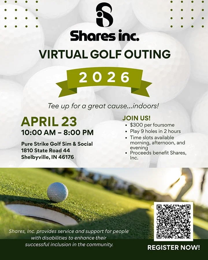 Support the mission of Shares Inc. and have fun golfing INDOORS at Pure Strike Golf Sim & Social in Shelbyville!