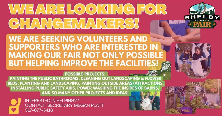 The Fairgrounds and Fairboard would appreciate any help that groups would be willing and able to provide in efforts to make this year's fair better than ever - and we can't do that without your help!