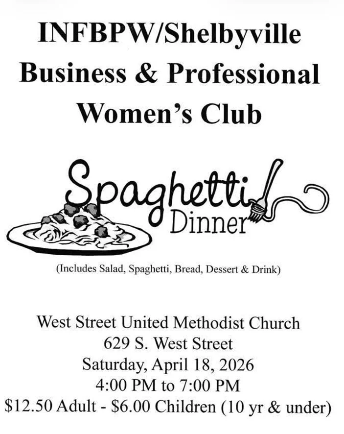 Please join INFBW for their annual spaghetti dinner on Sat., April 18 (4-7pm) at West Street United Methodist Church (629 S West St. Shelbyville IN 46176) / $12/50 Adult & $6 Children 10 yr & under.